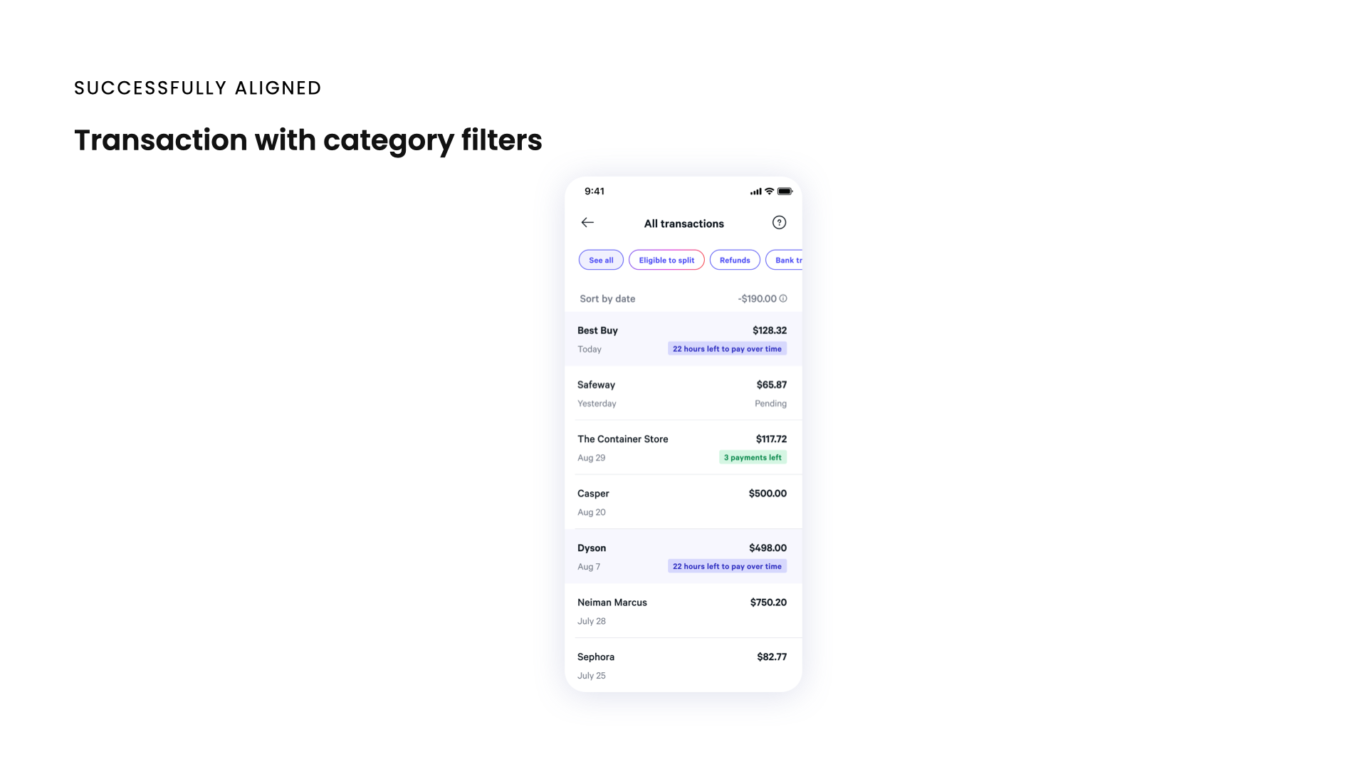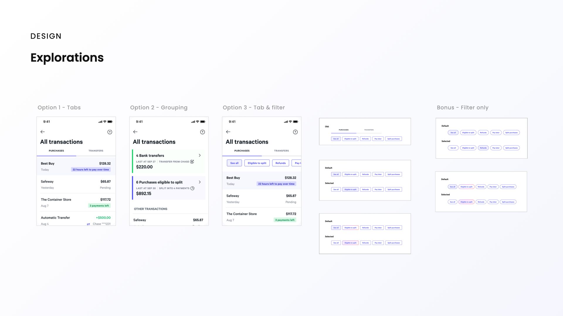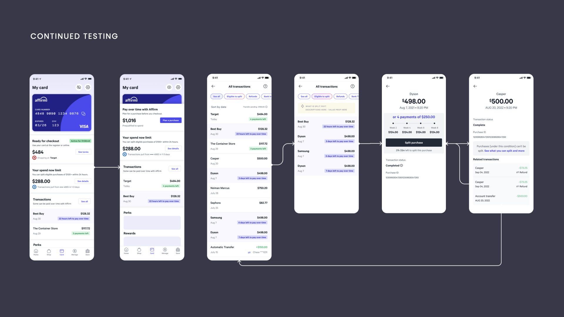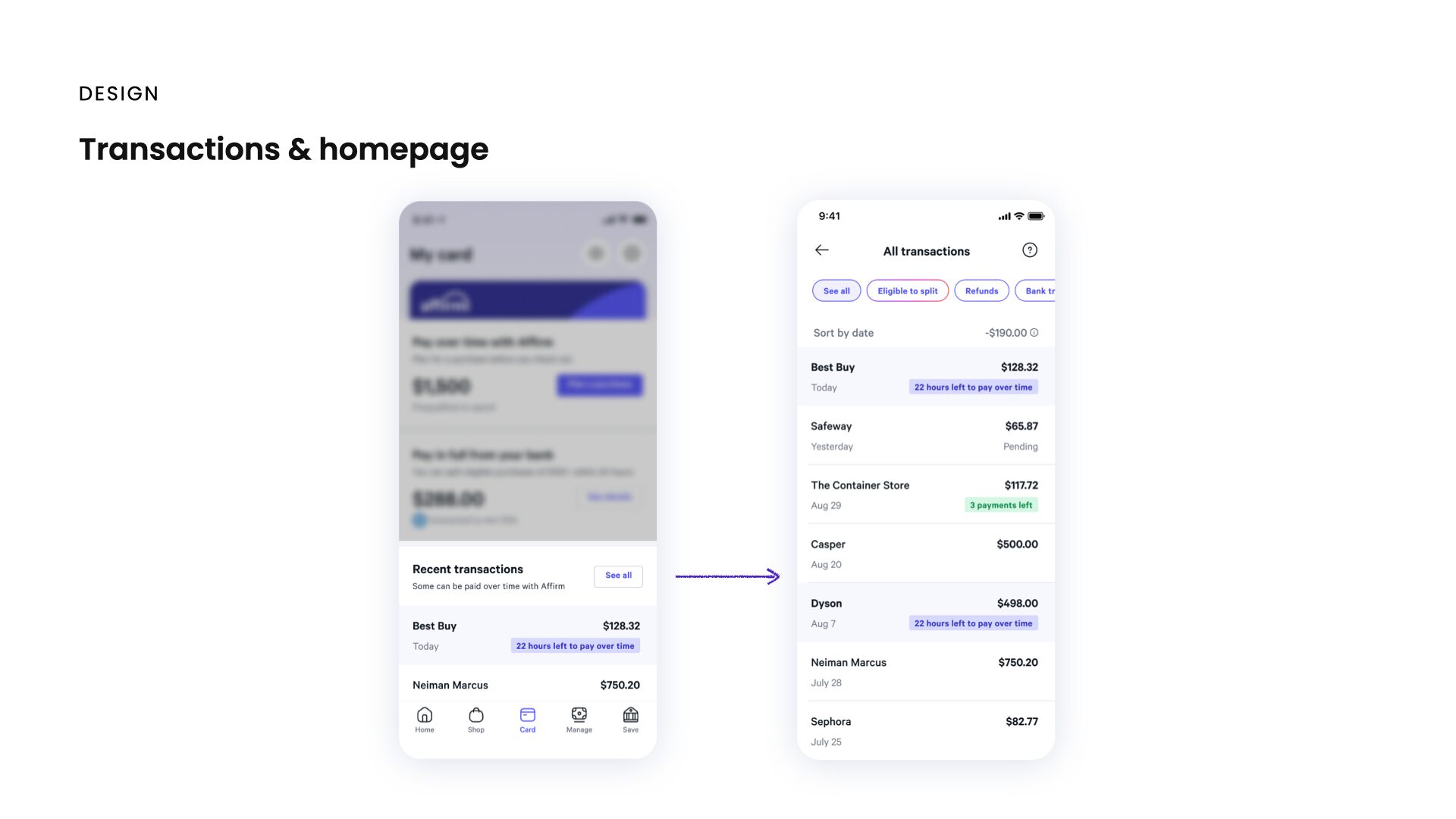 Overview: Showcase transactions, part of the convergence process for Affirm's card product (Debit+) and Affirm's core app.