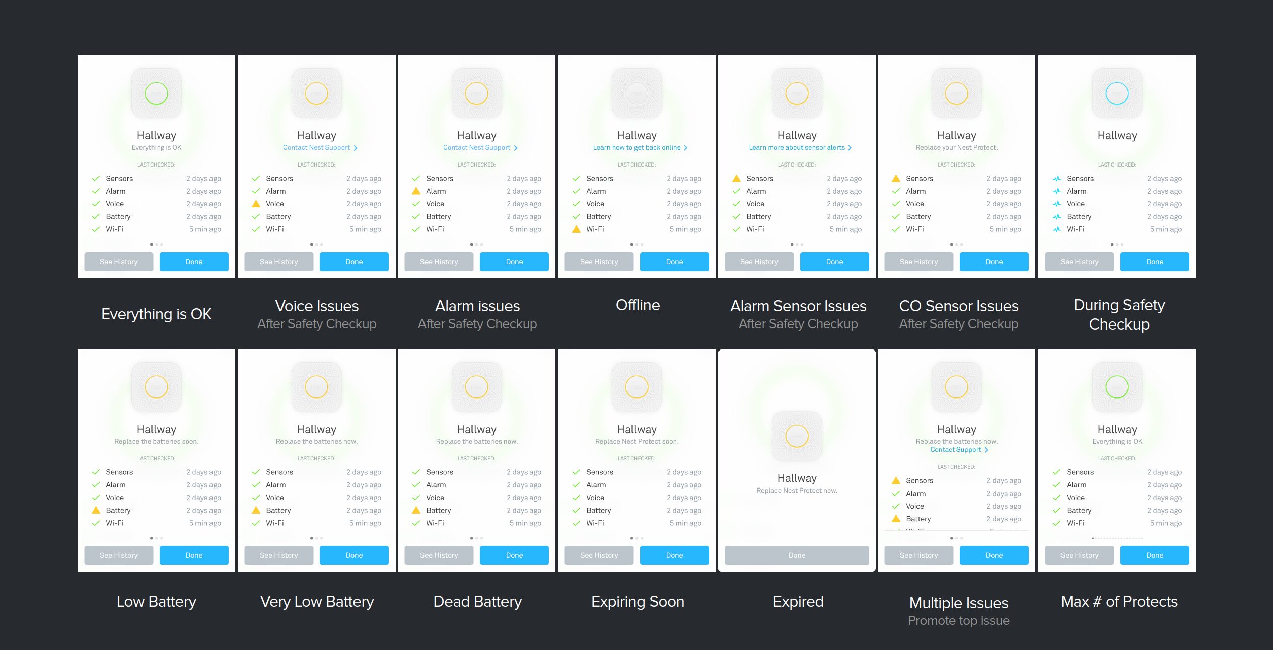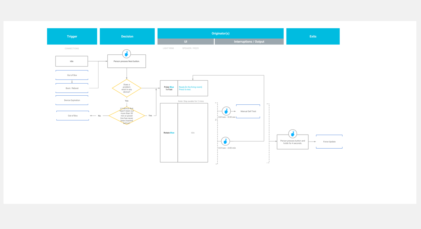 I was the design owner for the 1st and 2nd gen Nest smoke alarm device (both embedded hardware UX and iOS UI) before Nest became part of Google hardware (2018).